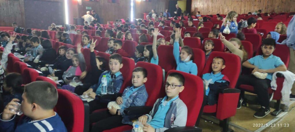 Çaycuma Cinecan1 Sinema salonunda İlçe Milli Eğitim Müdürü İsmail Baş ve Şube Müdürü İsmail Çelebi’ nin katılımlarıyla, birlikte filmi izleyen öğrenciler yapılan etkinlikten mutlu ayrıldılar. (Şaziye Dinç)