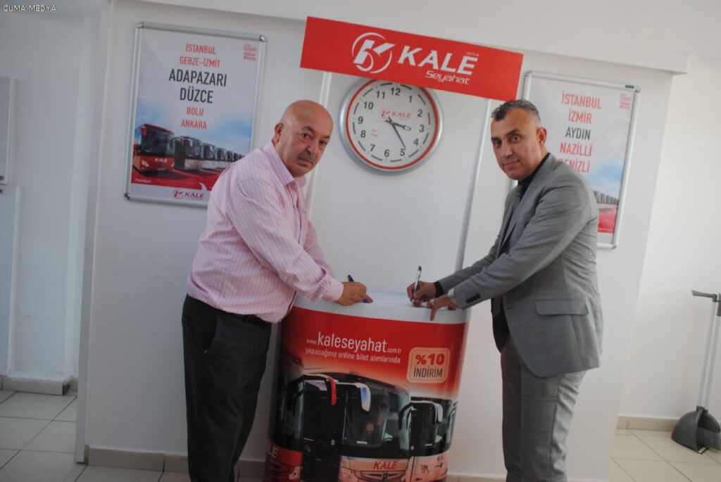 Kale Seyahat Bartın Bölge Müdürü Yusuf Kılıç ile Çaycuma Gazeteciler Derneği Başkan Yardımcısı Davut Uyar, Çaycumalı gazetecilerin aileleri ve üyeleriyle Ankara ve İstanbul arasında indirimli yolculuk yapmaları için sözleşme imzalandı.