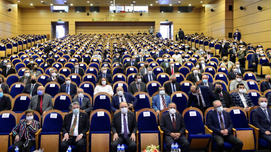 Konuşmasına üniversitenin akademik ve bilimsel alanda elde edilen projeleri hakkında bilgi vererek başlayan Rektör Prof. Dr. Mustafa Çufalı, Zonguldak Bülent Ecevit Üniversitesinin pandemi sonrasında yüz yüze eğitim faaliyetlerine, akademik ve bilimsel projelerine kaldığı yerden devem ettiğini, bu bağlamda küresel değişime ayak uydurarak hedeflerine odaklandığını, büyümeye ve ilerlemeye devam edeceğini söyledi. Özellikle Grizu-263 Uzay takımının dünya çapındaki başarıları, B-Dispate takımının 2021 Teknofest Model uydu Türkiye birinciliği olmak üzere bir çok başarılı proje ile şehrin ve bölgenin tanıtımında önemli rol oynadığını belirtti, sağlık kampüsünün ülke çapında imza attığı başarılar hizmete giren çok katlı yeni kütüphane binası ve ilahiyat fakültesi binası, 15 Temmuz Şehitler Kampüsü, yeni inşa edilecek poliklinik binası, projesi devam eden merkezi derslik ve spor kompleksi hakkında da bilgilendirmede bulundu.