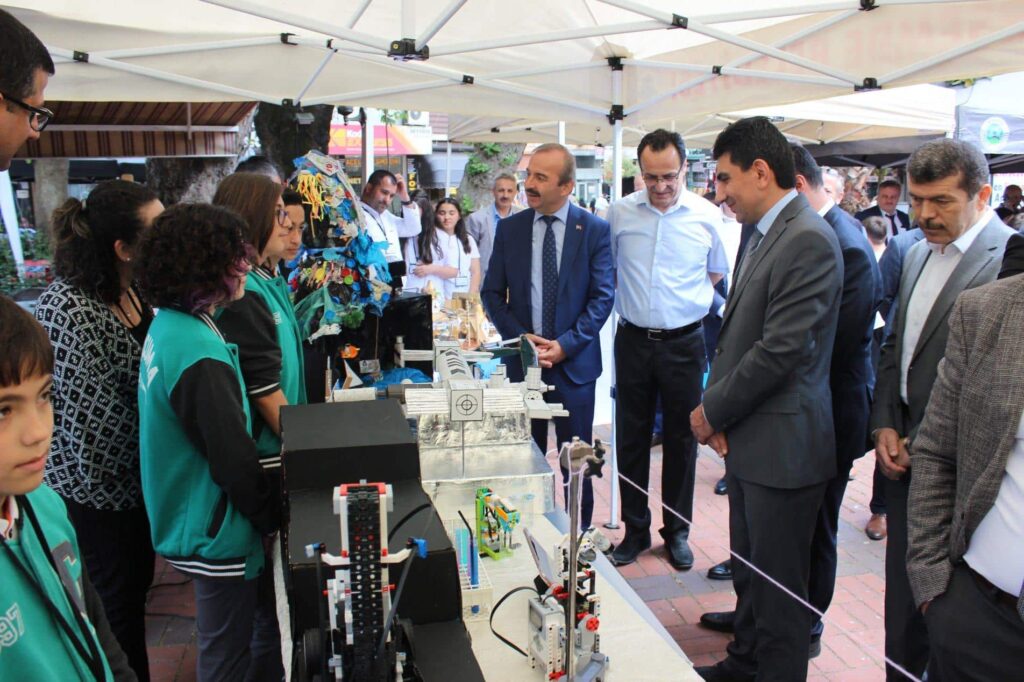 Cumhuriyet Meydanında gerçekleştirilen sergide 20 ortaokulu ürünlerini 46 masada sergileyerek katılanların beğenisine sundu ve büyük ilgi gördü.