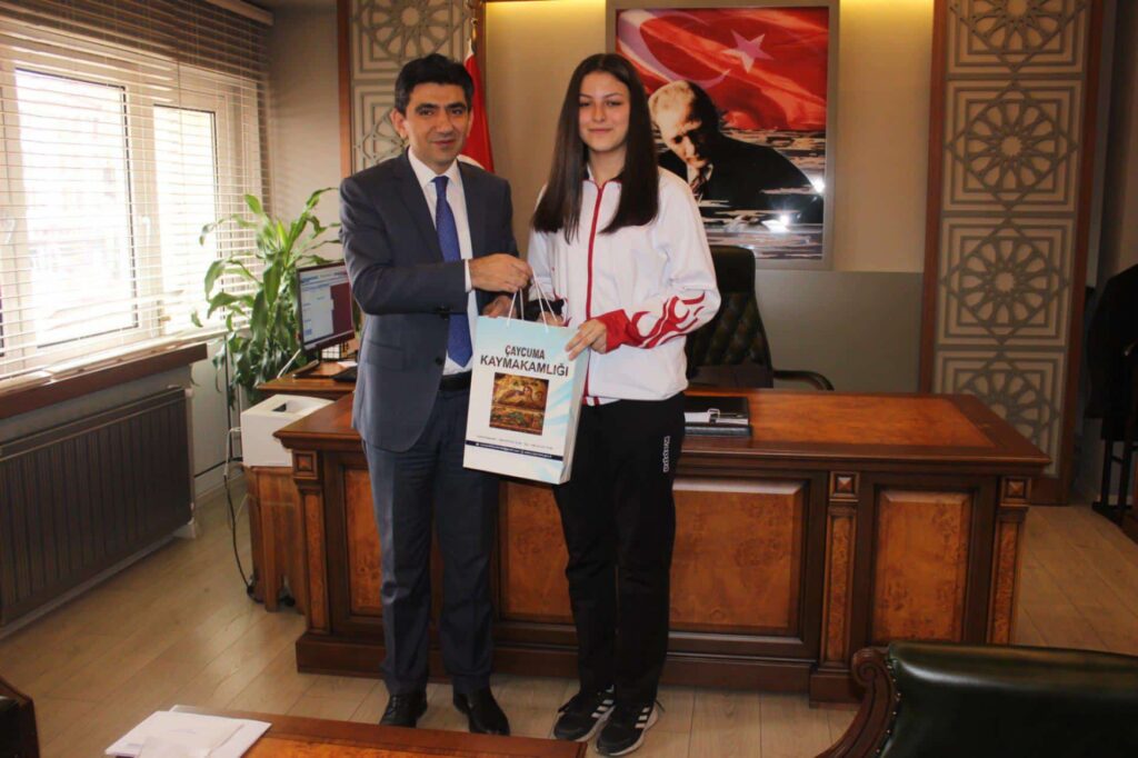 Çaycuma Gençlik ve Spor İlçe Müdürü Şendoğan Kaya , Antrenör Kadir Bölükçü ve şampiyon olan Livanur Tiryakioğlu, Çaycuma Kaymakamı Muharrem Coşgun ve İlçe Milli Eğitim Müdürü İsmail Baş’ı ziyaret ettiler. Kaymakam Muharrem Coşgun ve İlçe Milli Eğitim Müdürü İsmail Baş, öğrenciye makamlarında hediye takdim ettiler.